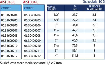 RACCORDI A SALDARE IN ACCIAIO INOX AISI 316-304